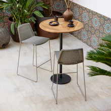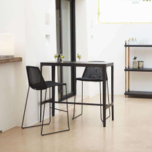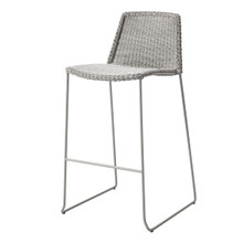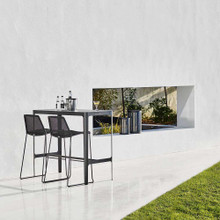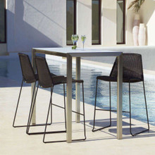 This classy outdoor barstool has modern faceted design with universal appeal. Its airy resin wicker body is weather-resistant and comes in four neutral shades to coordinate with a variety of palettes. The wireframe structure adds to the slim profile of this stylish seat. Line a few of these posh bar chairs along a high table or counter to enjoy a drink and watch the sun set on your veranda.