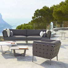 This dynamic two person seat is available in both left and right arm versions, which you can mix and match with Conic Single Seat and Daybed modules to create a custom sectional for your patio or terrace. There are also side tables and coffee tables in the collection, so you can build a stunning lounge area in both residential and commercial outdoor settings alike.