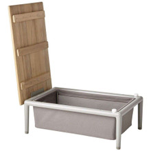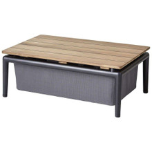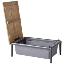 This ingenious outdoor side table has a unique design and modern feel. Its powder-coated aluminum frame comes in light or dark grey with a slatted teak wood tabletop. The top opens to reveal a matching Cane-line Tex® fabric container hanging below. It's perfect for storing magazines, snacks, lotion or a myriad of other small items you might need outdoors.