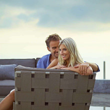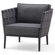 This chic patio arm chair has a memorable look and high-end design. Its tubular metal frame is made from durable yet lightweight aluminum that's powder-coated for weather-resistance. A broad weave of Cane-line AirTouch® fabric bands make up the arms and back of the chair. Thick seat and back cushions with QuickDry foam inserts are wrapped in Light Grey or a darker Grey AirTouch® fabric.