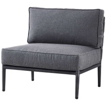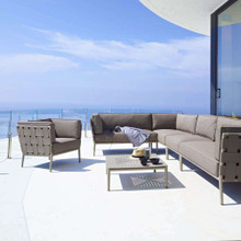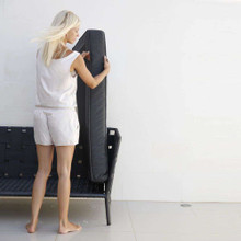 This comfortable outdoor seat has both style and adaptable utility. Its wide armless frame is made from powder-coated aluminum that is lightweight and durable. The lounge seat has QuickDry seat and back cushions wrapped in weather-resistant Cane-line AirTouch® in your choice of Light Grey or a darker shade of Grey. The upholstery complements the wide fabric straps of the woven back which give the Conic line its signature look.