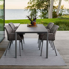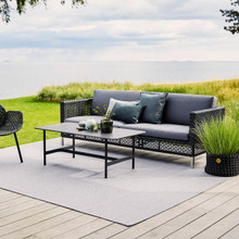 Dot is a simple and elegant rug for your outdoor space. Dot has a flat weave and structure that makes it very comfortable to walk on, even barefooted on a warm summer day. The rug is made of Selected PP and is both durable and practical. The rug can easily be cleaned with lukewarm water and a brush. It is also possible to use a high-pressure soft-jet cleaner. Dot can be used outdoors as well as indoors, and is both UV-resistant, antibacterial and allergy-friendly - all criteria that make Dot a durable rug with a long lifespan.