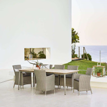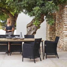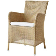 This familiar outdoor dining chair has a classic design and welcoming feel. Its gently curving body is made from solution-dyed polyethylene wicker in Black, Natural and Taupe colors. The synthetic weave is colorfast and much more durable than organic wicker. Its shapely frame is made from galvanized steel, so it is sturdy and built to last. Optional Cane-line Natte seat cushions from Sunbrella are available in multiple neutral tones. This premium outdoor textile is soft and durable.