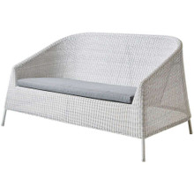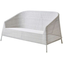 This artistic outdoor sofa has a minimalist design with a sculpted look. Its tapered flowing body is made of all-weather wicker in sand or mocca. The polypropylene resin wicker holds its color and is far more durable than traditional natural weaves. An optional Cane-line Natte seat cushion is available in a number of neutral tones. This Sunbrella textile is strong and easy to maintain and covers a QuickDry foam insert.