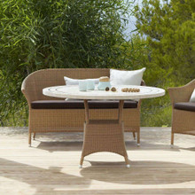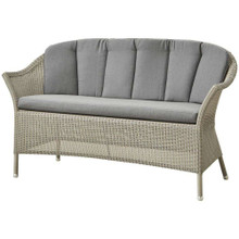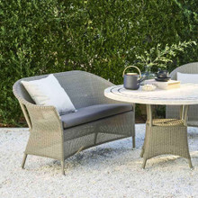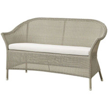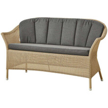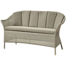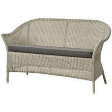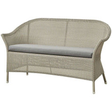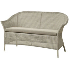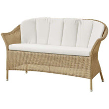 This relaxed outdoor loveseat has a familiar design a timeless appeal. Its curvaceous body is made from synthetic polypropylene wicker in your choice of taupe, natural or sand color. The woven resin is colorfast and much more durable than natural wicker. Optional seat and back cushions are available in multiple neutral shade. They're covered in Cane-line Natte fabric from Sunbrella that is weather-resistant and comfortable.