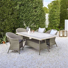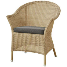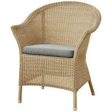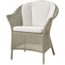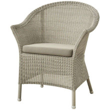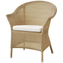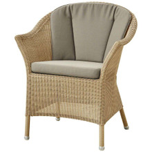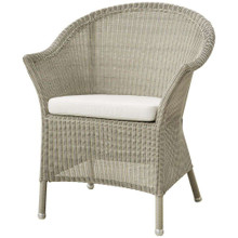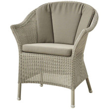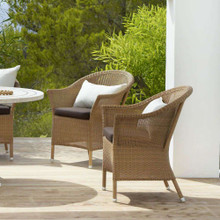 This timeless outdoor chair has a classic look and versatile design. Its shapely body is constructed of weather-resistant polypropylene wicker in natural, taupe or sand. This colorfast resin wicker is more durable than traditional natural wicker while retaining a familiar vibe. Optional seat and back cushions are available in a number of neutral tones. The upholstery is wrapped in Sunbrella Natte textile that resists fading and is easy to maintain.