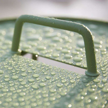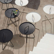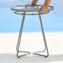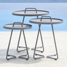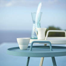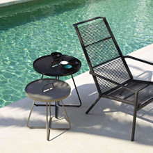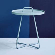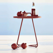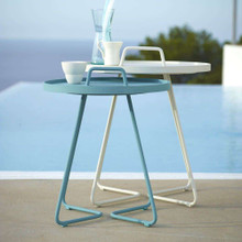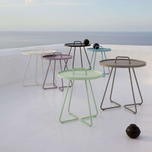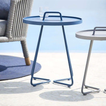 This modern, minimalist Danish patio table is made from aluminum and is finished in a wide variety of colors.