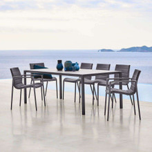 This sleek outdoor dining table has a streamlined design and modern look. Its sturdy rectangular aluminum frame is powder-coated in your choice of Light Grey, Lava Grey, Sand or Taupe. The tabletop is ceramic and comes in multiple neutral tones to complement a variety of decor palettes. The chic dining table is available in four sizes to accommodate any outdoor setting. Match the Pure Dining Table with a set of Cane-line's many side and armchairs to create an elegant al fresco dining experience.