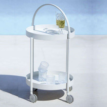 This minimalist modern patio cart is made from aluminum and is finished in grey.