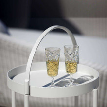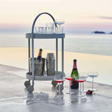 This charming outdoor cart has an understated design and universal appeal. Its aluminum frame is made from powder-coated aluminum in Lava Grey. Upper and lower trays provide ample space for glassware, drinks and accessories. The arched handle and wheeled base make it easy to roll this entertainment cart across you patio or hardwood deck.