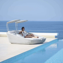 This absolutely stunning outdoor daybed has an elegant design and relaxing organic feel. Its shapely body is made from synthetic Cane-line weave in a lustrous black or eye-catching white grey color. An optinoal 4-piece Cane-line Natte cushion set is available in coordinating grey and white.