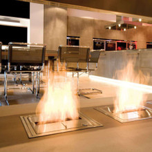 The BK5 Burner's near-zero clearance requirement and ventless design enable the burner to integrate easily into a myriad of fireplace installations. Its compact size works well for standalone outdoor fire pits or in a horizontal series indoors. The chic minimalist design and high-quality construction enable the BK5 to complement the decor of both commercial and residential settings. Almost all outdoor fireplace ideas can be realized with one of EcoSmart Fire's bio-ethanol burners.