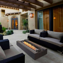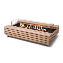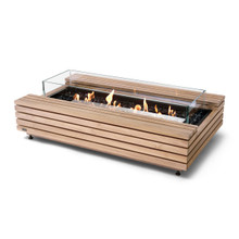 This stunning fire table is a perfect blend of form and function. Its rectangular Fluid™ Concrete body has a deep central channel with a long inset burner that make it as much a minimalist work of art as a functional piece of furniture. The contemporary composite concrete material is both durable and lightweight. It come in handsome tones of bone, natural and graphite to complement modern design palettes. This fire pit table now comes in natural oiled teak too. Wide surface areas run the length of each side, providing plenty of space to set drinks or small bowls.