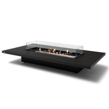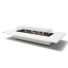The fire pit table includes decorative black glass charcoal to accent the long burner and a tempered glass wind screen to stabilize the flame. An optional glass cover plate is available to convert the recessed burner area into usable surface - making the Daiquiri a dual-purpose fireplace and spacious coffee table. The broad surface is perfect for setting food and drinks while entertaining family and friends.