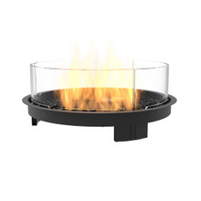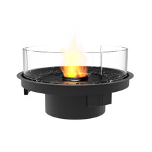 This round fire pit kit has a contemporary design and inviting vibe. Its curved black metal body encases a round stainless steel gas or ethanol burner and is protected by a toughened glass wind shield. The guard diminishes the impact of the wind and improves fuel efficiency. The fire pit kit's round form creates a striking focal point with a mesmerizing flame. It can easily be integrated into surfaces made of non-combustible materials such a brick, concrete or tile. It's perfect for intimate spaces where a warming glow enhances the ambiance. Decorative black glass charcoal adds an attractive accent around the burner.
