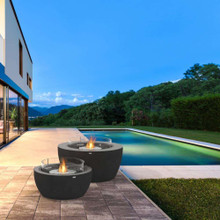 Pod fire pit tables also offer a rare feature - fuel flexibility. Each EcoSmart Fire Pod can be equipped to handle e-NRG bioethanol or gas (liquid propane or natural gas). Bioethanol produces a smokeless and low odor flame that doesn't require a chimney or flue for ventilation. Consequently, this configuration can safely be used indoors. If you're more comfortable with standard propane, just hook up a tank to the fuel adapter and you're ready to go. Plumbed gas requires additional installation contractors, but it's an inexpensive option that doesn't require you to refill a tank when the fuel runs out.