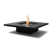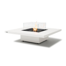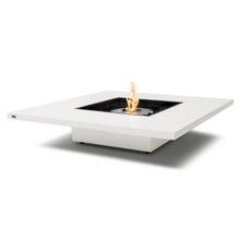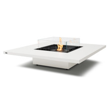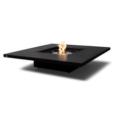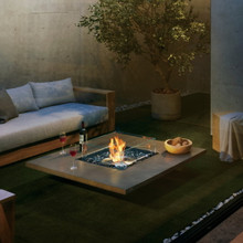This handsome fire table has a square top in two sizes and is crafted from modern Fluid™ concrete composite in Natural, Graphite and Bone colors. It has a coordinating toughened glass firescreen and can be configured to use bio-ethanol, liquid propane or natural gas as fuel.