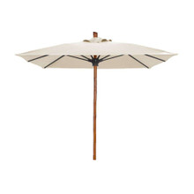 This stylish market umbrella has a timeless design and organic appeal. Its centerpost is made up of a sturdy aluminum core wrapped by patented FiberTeak™ that simulates natural bamboo. The faux wood comes in both light and dark versions and resists warping and splitting better than actual wood.