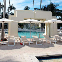 This popular market umbrella has a timeless centerpost design that is perfect for any occasion. Its slender aluminum pole is available in your choice of white, black, bright aluminum or champagne bronze. The powder-coating protects the metal from corrosion and damage from the elements. The Lucaya outdoor umbrella comes in two square sizes and three octagonal ones.