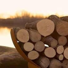 This graceful log rack has the artistic look of a minimalist sculpture. Its arcing wingspan cradles many logs or split pieces for the night's supply of firewood. It comes in carbon steel with a rustic oxidized iron finish or sleek stainless steel.