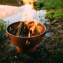 This exquisite firepit has a regal bearing with its iconic symbol of French heraldry proudly displayed around its perimeter. The fire bowl is carefully handcrafted in the U.S.A. using strong carbon steel and finished in iron oxide. The coating starts off a bright rust and then transitions to a dark mahogany color over time.