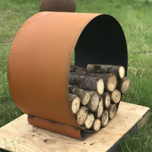 This massive rack circles your firewood and keeps it dry. The round frame is formed using mild carbon steel with a rustic iron oxide finish that won't need any attention and will change over time to a dark mahogany color.