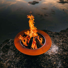 The Saturn Fire Pit has fuel flexibility - it can burn wood, plumbed natural gas or liquid propane. Gas versions use premium stainless steel HPC Penta Burners which generate a beautiful natural flame. Lava rocks are include to enhance the natural appeal of gas fires and a protective cover or steel top is recommended to ensure the burner and ignition system stays dry.