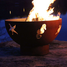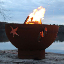 The firepit is handmade in the U.S.A. by seasoned artisans who take the heavy duty mild carbon steel, sandblast it and then coat the metal with a rugged oxidized iron finish. It's easy to care for and it darkens as it matures. Bring the coast to your backyard or deck with this inspired fire featuure and let the magic of a fire enhance your outdoor get-togethers.