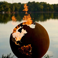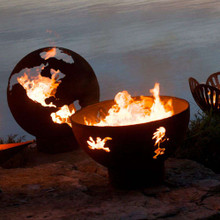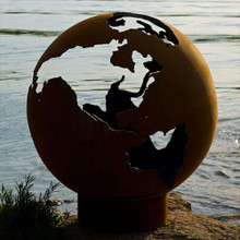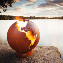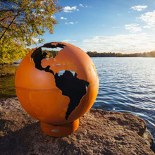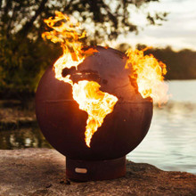 This spectacular firepit puts the whole world on display. Its globe is handmade in the U.S.A. using heavy duty carbon steel with detailed cutouts of the Earth's continents. The metal has a rich oxidized iron finish that will change to a deep mahogany over time