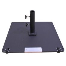 This umbrella is the perfect size for shading a bistro table with a hole in the middle. When used in concert with a table, it only requires a 40-60 pound base. If left as a standalone parasol, it needs significantly more weight. Typically, a base weighing at least 75 pounds is needed to safely stabilize it.