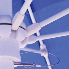 A manual push-up and pin lift system is used to open and close the 7.5-foot octagonal canopy, which is supported by fiberglass ribs. This flexible but sturdy material bends and helps the umbrella better handle windy conditions. The single vent canopy is covered with high-performance Sunbrella fabric in one of 30 neutral hues or vibrant colors. Sunbrella is a 100% solution-dyed acrylic synthetic textile, which resists UV rays, water and fading.