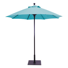 This commercial-grade aluminum center pole umbrella is available in three powder-coated finishes and has fiberglass ribs. It features a 7.5 foot octagonal canopy in many Sunbrella colors and has a manual push up lift system.
