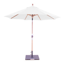 The 9-foot octagonal canopy is opened and closed by a crank lift system with metal housing and a steel cable. A unique feature of this market umbrella is its rotational tilt functionality. Grasp one of the wooden ribs and rotate it clockwise around the central pole to gradually increase the tilt angle. This enables you to adjust the shade as the sun moves across the sky. Each canopy is covered in weather-resistant Sunbrella fabric in your choice of thirty colors and neutral tones. The colorfast solution-dyed acrylic textile resists tearing and water, and will protect against harmful UV radiation.