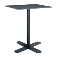 This minimalist table is made of galvanized steel with an x-base, tubular stem and your choice of round or square top in two sizes. The metal is powder-coated in a wide variety of neutral hues and rich colors. Select a matching or contrasting metal tabletop or an HPL version in black or white.