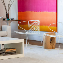 The organic lines of the Bolonia Poltrona gently curve and wrap around to form wing-style arms. The ergonomic seat and backrest are comprised of vertical metal wires that let air flow through, while providing ample support. You can stack these lounge chairs to save space and store when not in use.