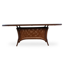 This spectacular outdoor dining table has a traditional look with timeless style. Its sculpted base is made using all-weather SunLoom® vinyl wicker that's woven over a strong aluminum frame. The supple open weave material is reinforced by nylon cord and is available in your choice of bisque or caramel finish. The corrosion-resistant metal gives the table support and is double-coated with polyester resin paint to coordinate with the finish color.