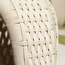 This refined patio loveseat has a winsome design and universal appeal. Its flowing body is handcrafted using durable SunLoom® vinyl wicker. The weather-resistant weave remains supple over time and comes in either bisque or caramel finish. It's supported by a corrosion-resistant welded aluminum framework beneath.