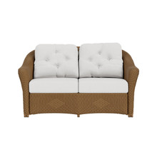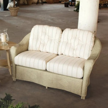 This plush replacement cushion set goes with the Lloyd Flanders Reflections Loveseat. It's a perfect way to update your outdoor 2-seat couch when its upholstery finally wears thin, starts to fades or you simply desire a color palette change. The four cushions include quickly-drying Bio Comfort® Foam Core inserts with water-resistant fabric covers from Sunbrella®, Outdura® and other respected manufacturers. These durable synthetic textiles are fade and tear-resistant, and come in a wide variety of classic solid colors, eye-catching stripes and engaging patterns. The back cushion is available with or without decorative buttons.