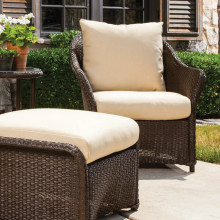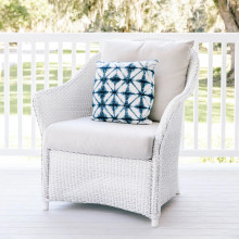 The chair includes ample seat and back cushions filled with quick-drying foam inserts with a Bio Comfort® core. Upholstery is wrapped in durable all-weather fabric from premium textile manufacturers like Sunbrella® and Outdura®. These high-performance outdoor fabrics are UV-resistant, tear-resistant, soft and come in over one hundred eye-catching patterns, rich solid colors and neutral hues.