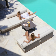 Like all pieces in the Aiko lounge range, this wide comfort module comes with a sleek HPL back support and arms can be added to either side. This modern Italian laminate is strong, easy to clean and is available in a variety of white, grey and brown colors. Combine left and right arm versions of this piece with other modular Aiko pieces to form a personalized outdoor sectional for your hardwood deck or poolside lounging area. Or, add arms to both sides to create a majestic 1-seater to sit alongside one of Aiko's rolling side tables.