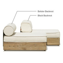 The thick bolster and seat cushions are covered in top of the line Sunbrella® fabric in a variety of classic neutral tones, bright solid colors and brilliant striped patterns. This premium outdoor textile is fade-resistant and should weather the elements for years.