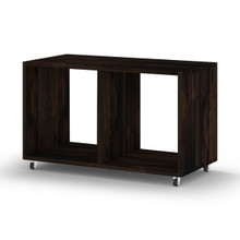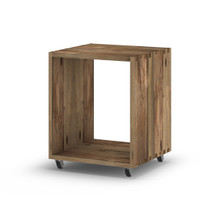 This primative outdoor table will keep the party rolling. Its simple minimalist design sticks to the basics - storage, surface and mobility. The wooden box-like frame and top is made from environmentally responsible reclaimed teak and finished using Mamagreen's new "drift-look" process. This novel technique creates a natural driftwood appearance by enhancing the unique qualities inherent in each piece of wood. Variations in color and texture are celebrated, rather than viewed as character flaws. The hardwood undergoes additional stressing to achieve the weather-worn look. This intriguing finish is available in your choice of dark and rich espresso or light original woodgrain.