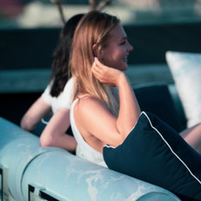 The outdoor 2-seater has plush seat cushions and bolster backrests that provide luxurious comfort and all-weather durability. Quick-dry foam inserts are wrapped in tear and water-resistant Sunbrella® or Batyline Elios® fabrics. These longlasting textiles are colorfast and come in a wide variety of hues and patterns.