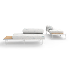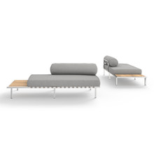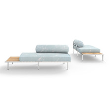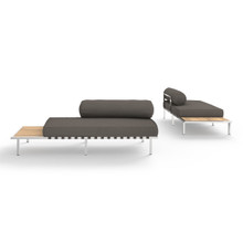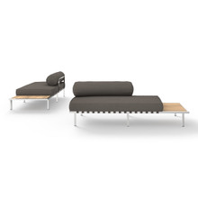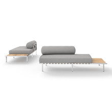 A defining characteristic of this outdoor modular seat is its integrated side table. Made from smooth-sanded plantation teak, the end table comes on either the left or right hand side. This allows the multi-functional sectional sofa to adapt to different sized and shaped outdoor spaces. Build your custom lounge pit by adding a couple single seat elements, ottomans, low and coffee tables.