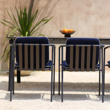 Set up to 12 of these chic arm chairs around one of the Albatross dining tables to form an eye-catching al fresco dining set for your deck or screened-in porch. The collection is commercial-grade, so it is also a perfect choice for outdoor restaurants. This chair is stackable as well - making it easy to store when not in use.