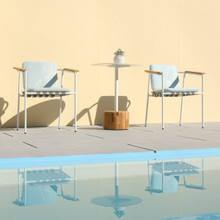 Gather 4-12 of these high-end armchairs around an Albatross Square or Rectangular Dining table to create a magnificent al fresco dining set. The collection looks amazing on upscale residential decks and commercial terraces or outdoor restaurants. When not in use, the arm chairs stack for easy storage.