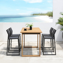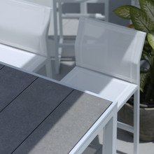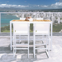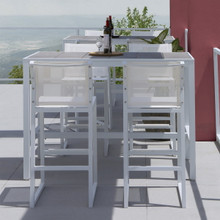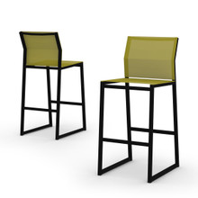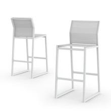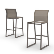 This bright and cheerful bar stool is a welcome addition to any upscale patio or deck. Its simple modern design has crisp, clean lines that complement most decor. The strong aluminum frame is powder-coated in a finish of black, white, grey or taupe, which helps protect the metal from the ravages of extended exposure to the elements.