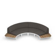 Each tailored seat and back cushion is comprised of a Sunbrella® cover with a quick-dry foam core. The high-performance outdoor textile is comfortable, tear and water-resistant, colorfast and a breeze to clean. Made from solution-dyed acrylic material, this fabric comes in multiple colors and patterns. The back of the rounded seat is upholstered in Stamskin® in your choice of neutral or vivid colors.