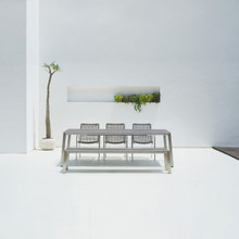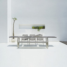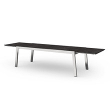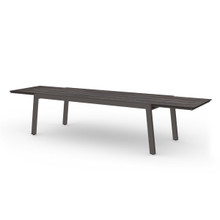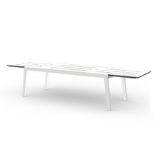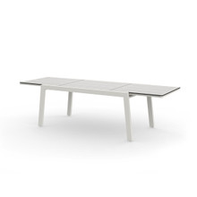 Mamagreen showcases the latest in cutting edge materials and manufacturing process in the development of our luxury collections of outdoor patio furniture. This exquisite dining table embodies the best of both worlds, while marrying form and function. Its sublime minimalist design belies its hidden capability to expand and accommodate additional seats, as your party grows. To extend the table, simply pull the ends to reveal the hidden center leaf, spin it into place and push the ends to secure the tabletop in place. And...voila!