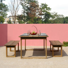 This attractive patio bench is constructed from brushed recycled teak wood and comes in two widths to coordinate with the collection's dining tables.